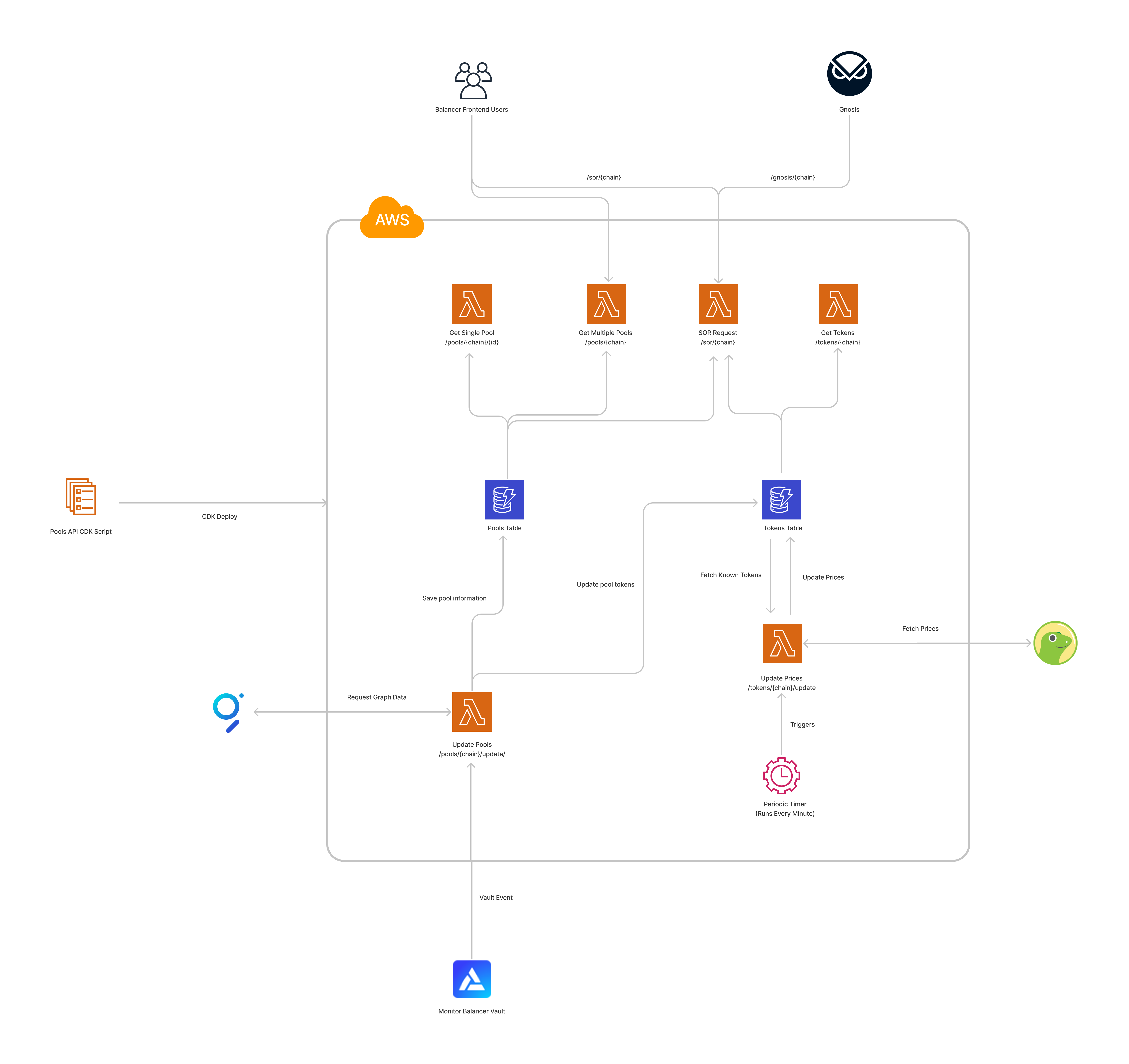 • A DynamoDB database that hold Balancer pool information with tokens and current balances.